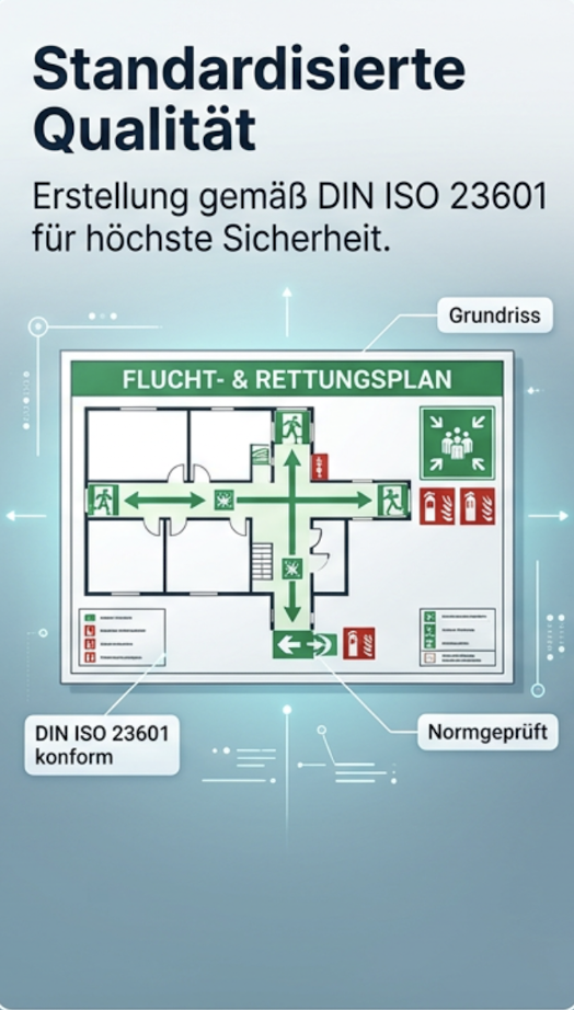Erfahren Sie, wie wir individuell angepasste Flucht- und Rettungspläne gemäß DIN ISO 23601 für Ihre Sicherheit erstellen.